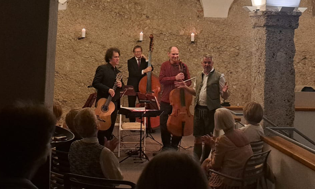 Judit Taskovics2025-09-25T11:40:06+02:00Am Samstag, den 20. September 2025, war das Mozart Quartett Salzburg auf geheimer Mission unterwegs: ein Konzert, das auf keiner Bühne zu erleben ist – und für das es keine Tickets gibt. Unsere Büroräumlichkeiten verwandelten sich in einen intimen Konzertsaal, wo Musik ohne Distanz und mitten unter Freunden erlebbar wurde. Das Quartett um Matthias Michael Beckmann (Violoncello & Moderation), Tatiana Isaenkova (Violine), Florian Beer (Violine) und Dorothea Galler (Viola) spielte gemeinsam mit besonderen Gästen: Cecilio Perera – Gitarre Marina Razumovskaja – Tanz & Kastagnetten Christian Junger – Kontrabass Die musikalische Reise spannte einen weiten Bogen: von Mozarts jugendlicher Spritzigkeit über Vivaldis [...]